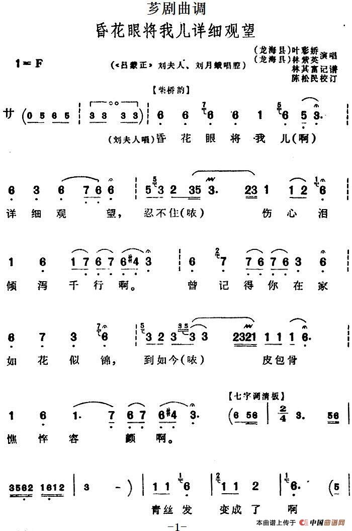 ![[芗剧曲调]昏花眼将我儿详细观望(选自《吕蒙正》刘夫人、刘月娥唱腔)(1)_原文件名:[芗剧曲调]昏花眼将我儿详细观望(选自《吕蒙正》刘夫人、刘月娥唱腔)叶彩娇、林紫英演唱 林其富记谱 陈松民校订3.jpg](/Public/Uploads/2017/03/11/58c4038adc524.jpg)