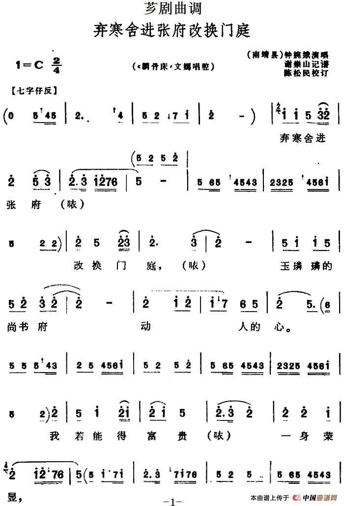 作曲:谢崇山记谱 陈松民校订 演唱(奏):钟婉娥 来源:中国曲谱网 上传:热爱音乐88