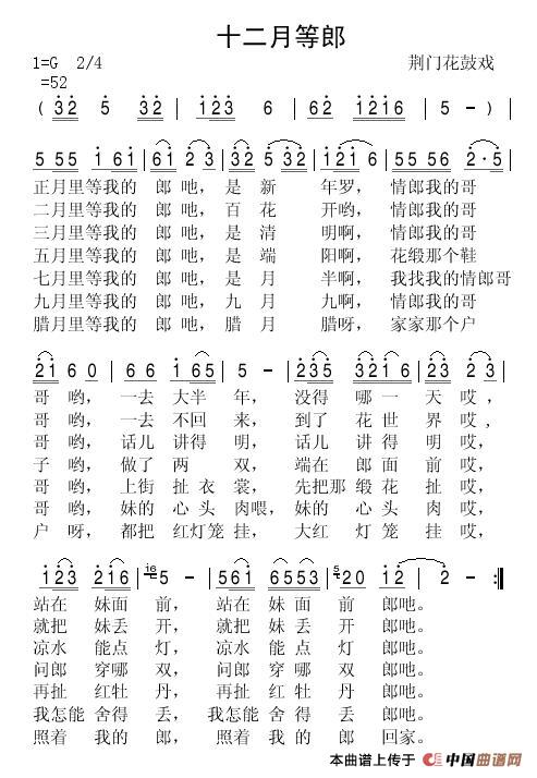 关于《[荆门花鼓戏]十二月等郎》曲谱的评论