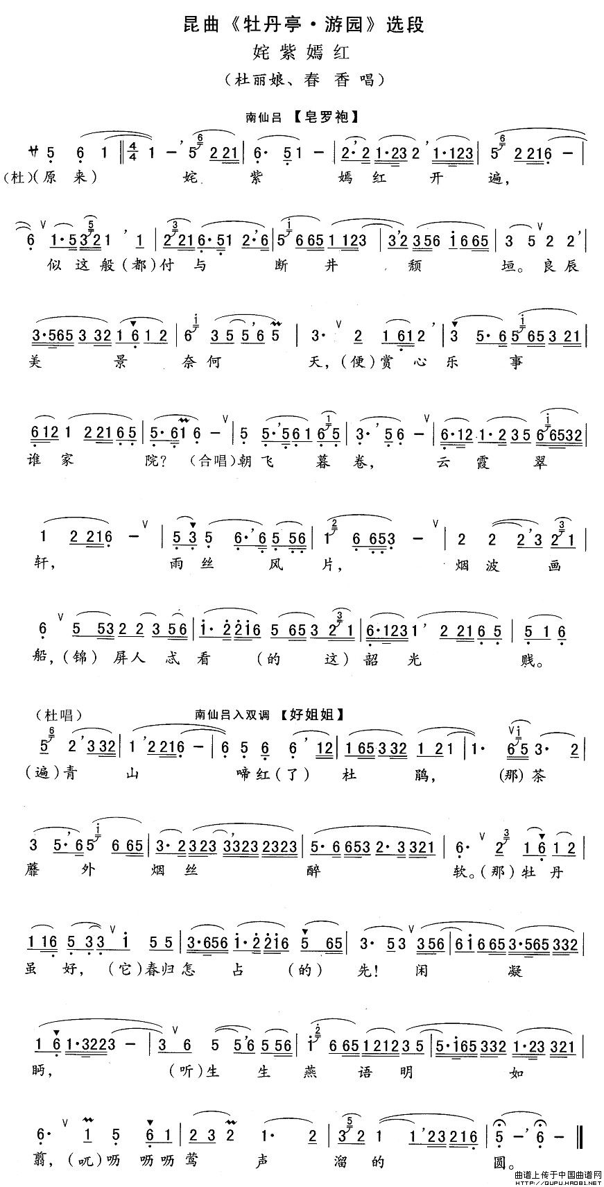 关于《[昆曲]姹紫嫣红》曲谱的评论