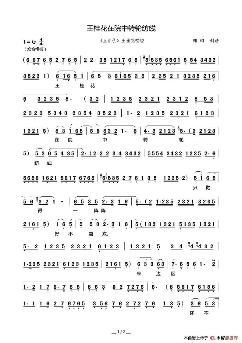 关于《[秦腔]王桂花在院中转轮纺线》曲谱的评论