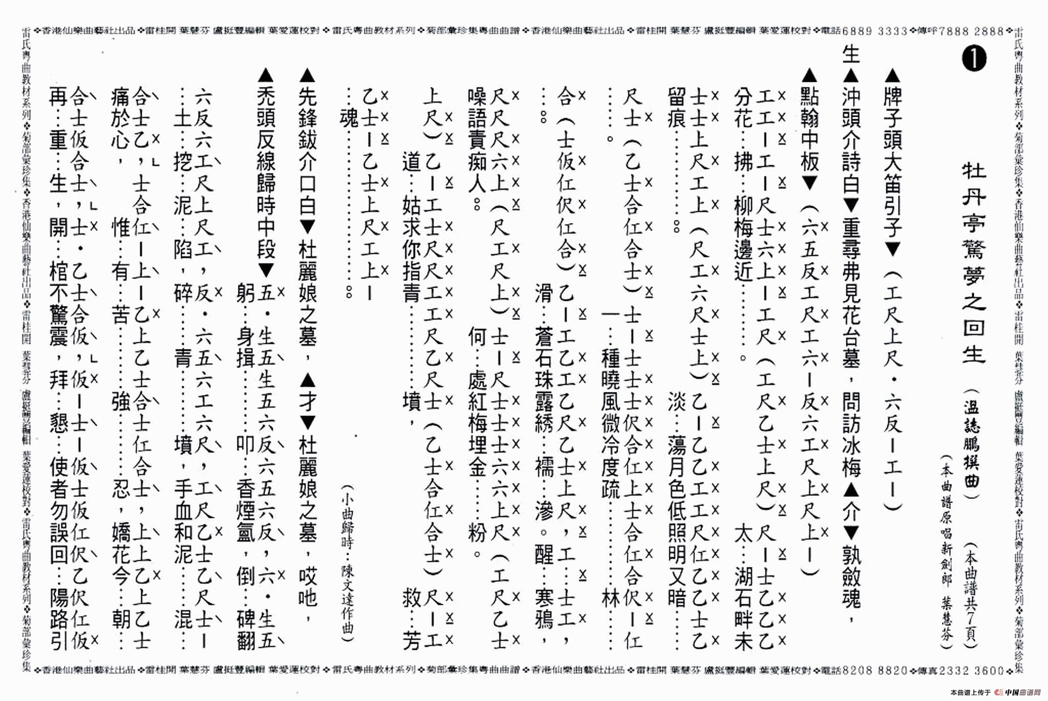 [粤曲]牡丹亭惊梦之回生(工尺谱)