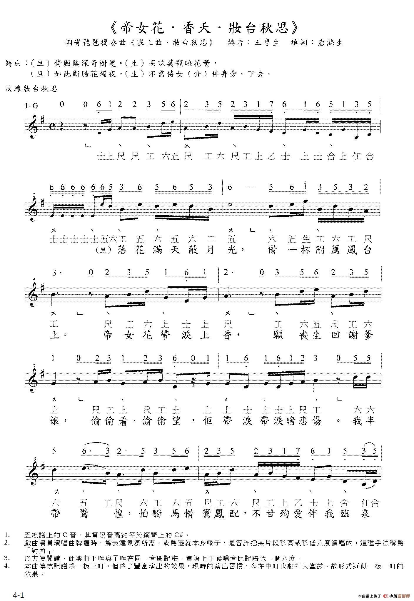 [粤曲]帝女花·香夭·妆台秋思(工尺谱+简谱+五线谱)
