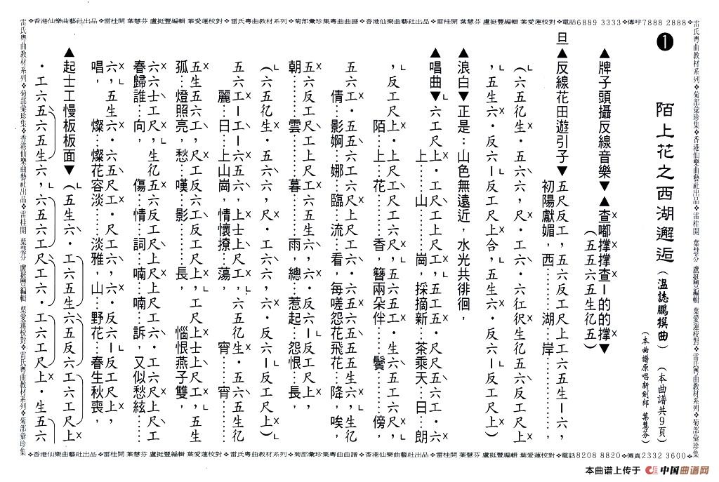 [粤曲]陌上花之西湖邂逅(工尺谱)