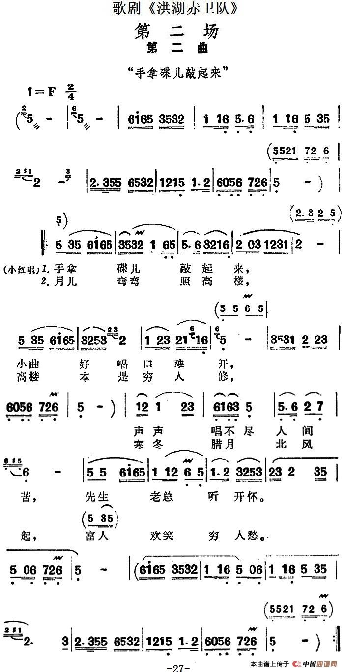 关于《歌剧《洪湖赤卫队》第二场第二曲:手拿蝶儿敲起来》曲谱的评论