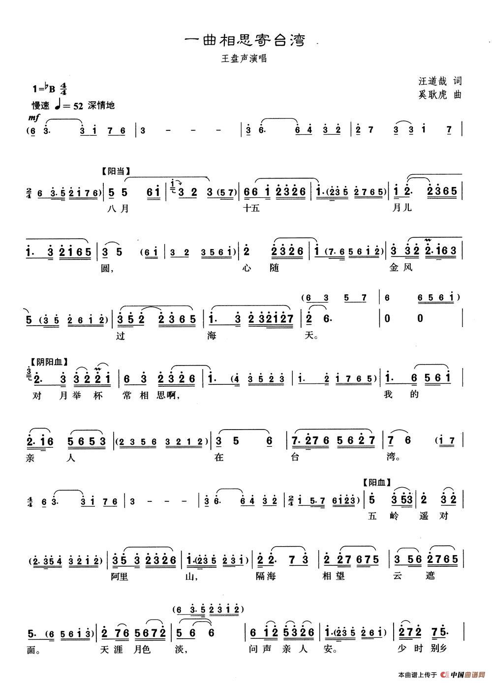 关于《[沪剧]一曲相思寄台湾》曲谱的评论