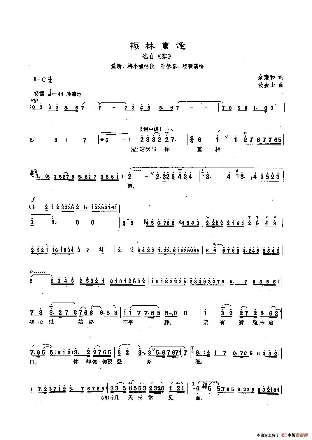 关于《[沪剧]梅林重逢(《家》觉新、梅小姐唱段)》曲谱的评论