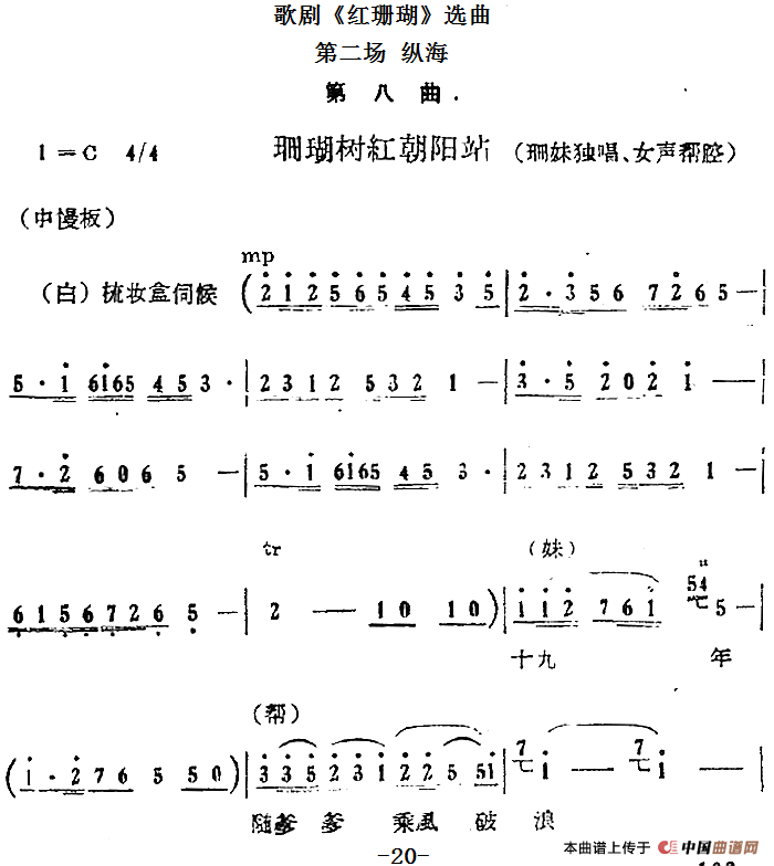 歌剧《红珊瑚》选曲:第二场 纵海(第八曲 珊瑚树红朝阳站 珊妹唱段)