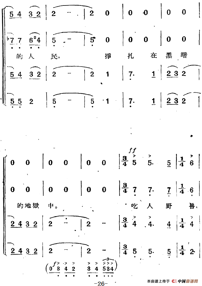 提示:在曲谱图片上单击右键,选择“图片另存为...”即可将曲谱保存到您的电脑中,打印时候可将图片插入到WORD中,调整合适大小打印即可。
