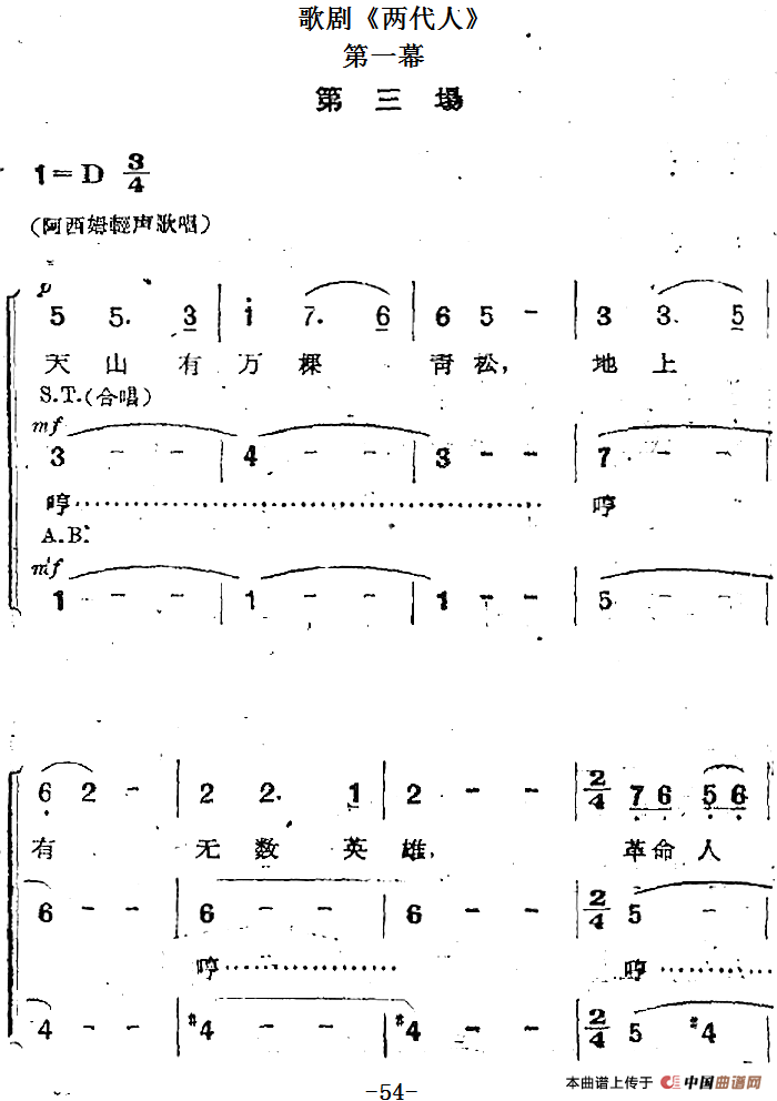 关于《歌剧《两代人》第一幕 第三场》曲谱的评论