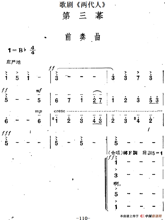 关于《歌剧《两代人》第三幕》曲谱的评论