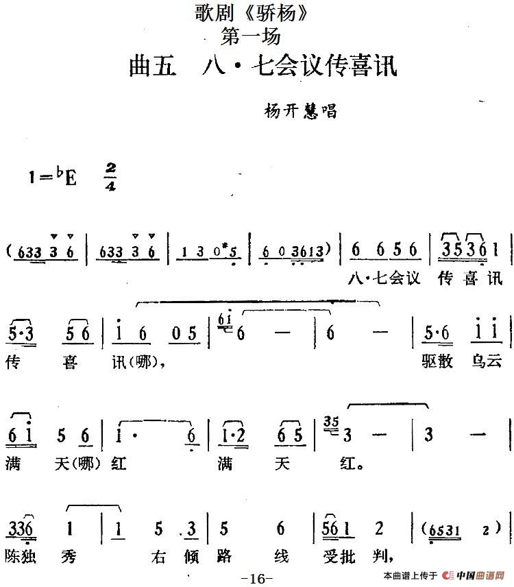关于《歌剧《骄杨》第一场:曲五 八七会议传喜讯》曲谱的评论