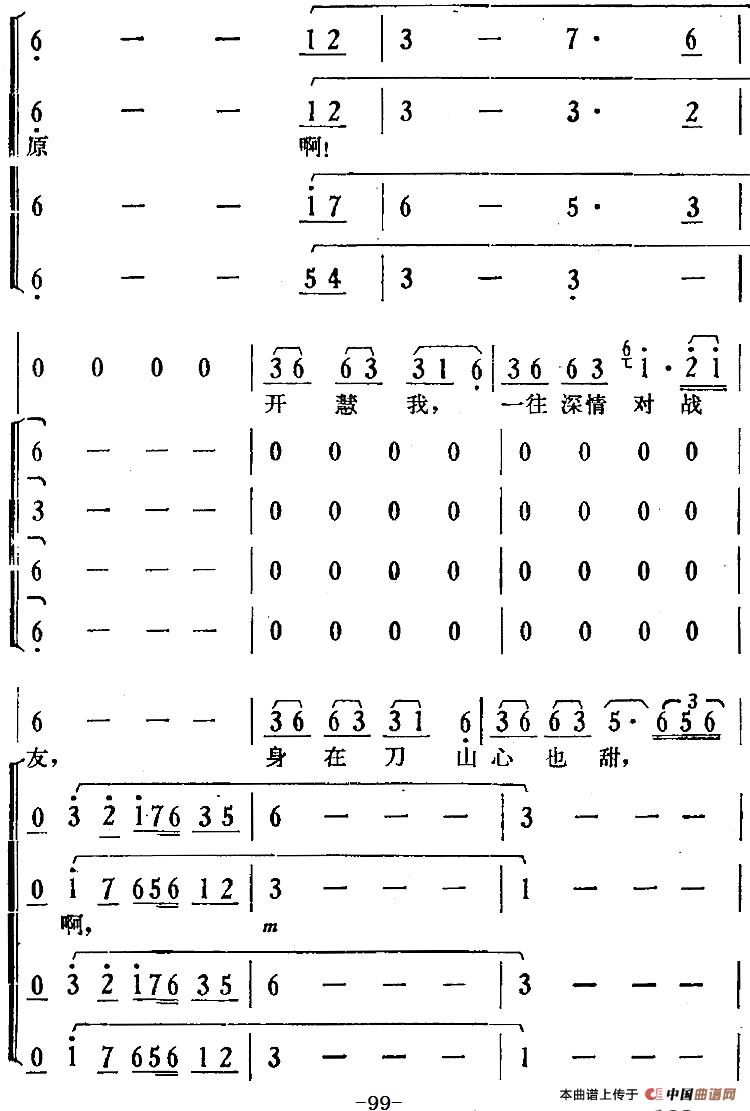 提示:在曲谱图片上单击右键,选择“图片另存为...”即可将曲谱保存到您的电脑中,打印时候可将图片插入到WORD中,调整合适大小打印即可。