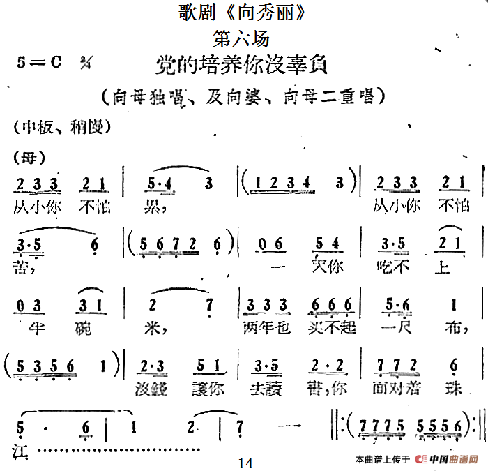 关于《歌剧《向秀丽》第六场:党的培养你没辜负》曲谱的评论