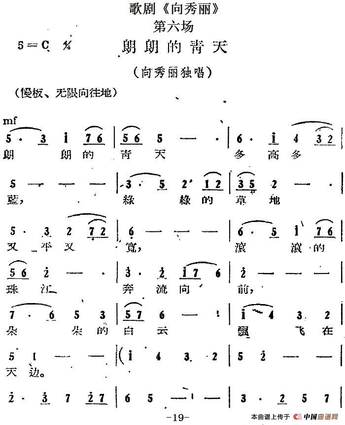 关于《歌剧《向秀丽》第六场:朗朗的青天》曲谱的评论
