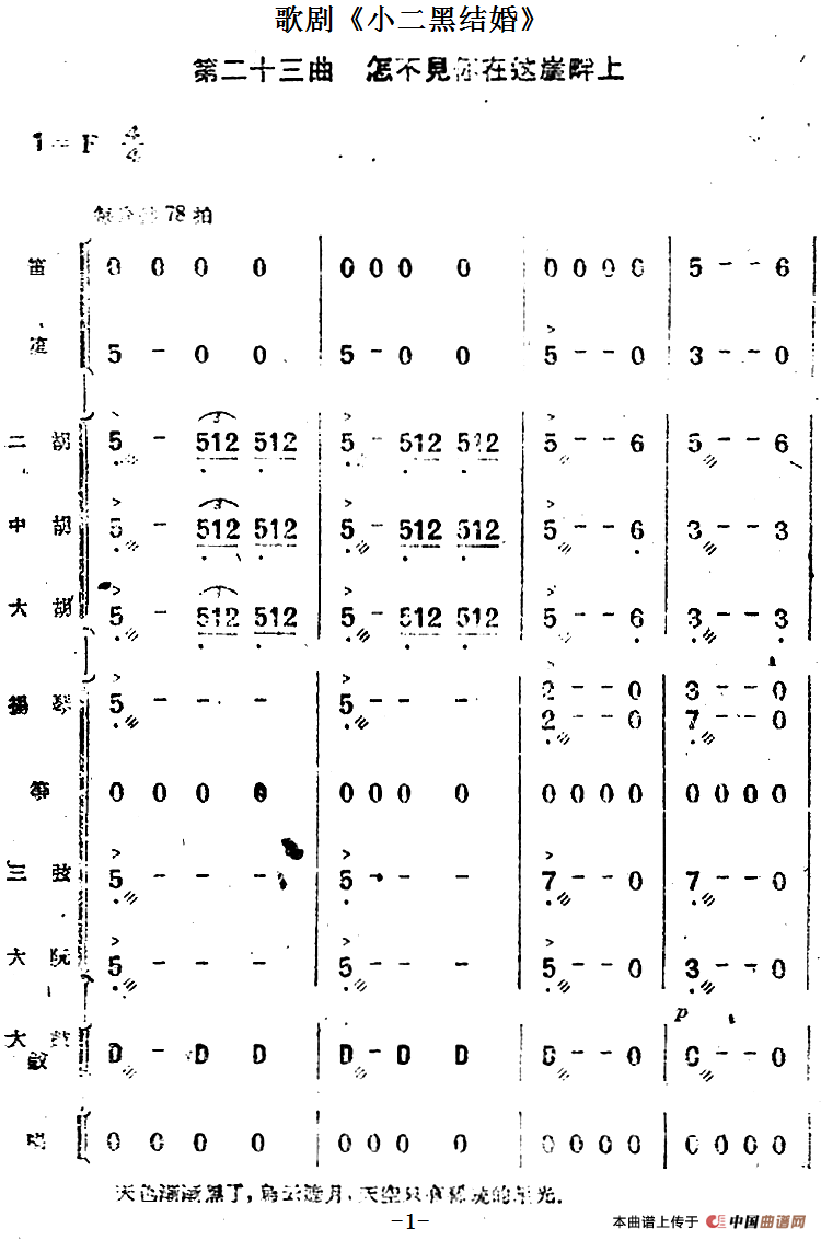 歌剧《小二黑结婚》第二十三曲 怎不见你在这崖畔上(民乐合奏总谱)