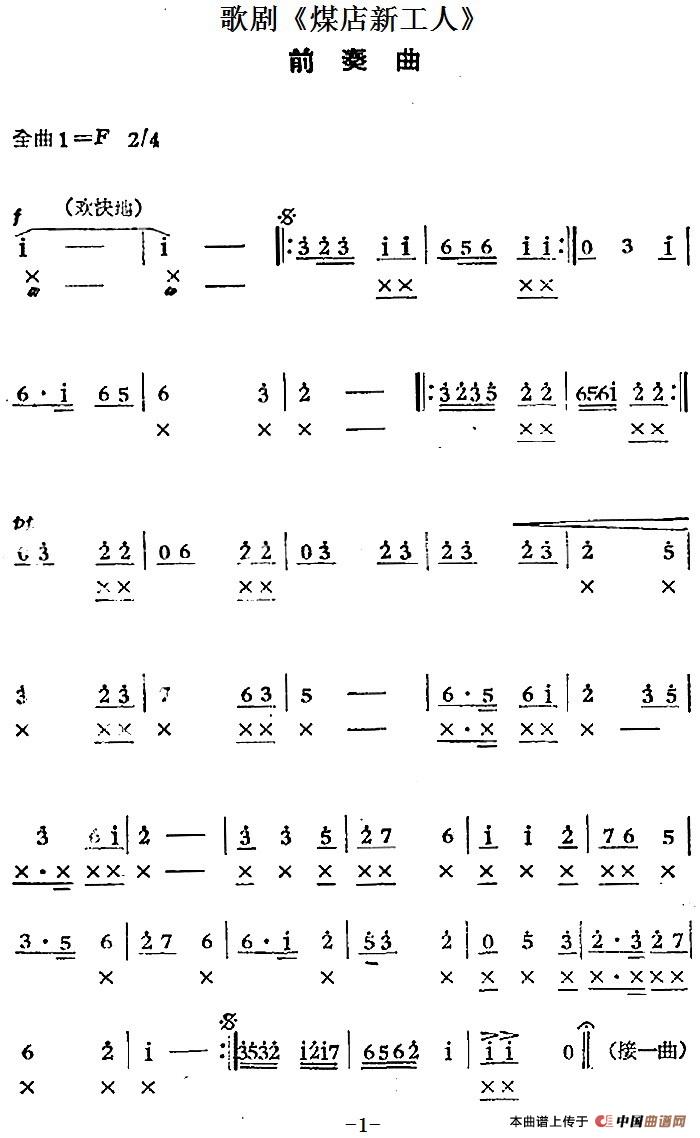 关于《歌剧《煤店新工人》前奏曲》曲谱的评论