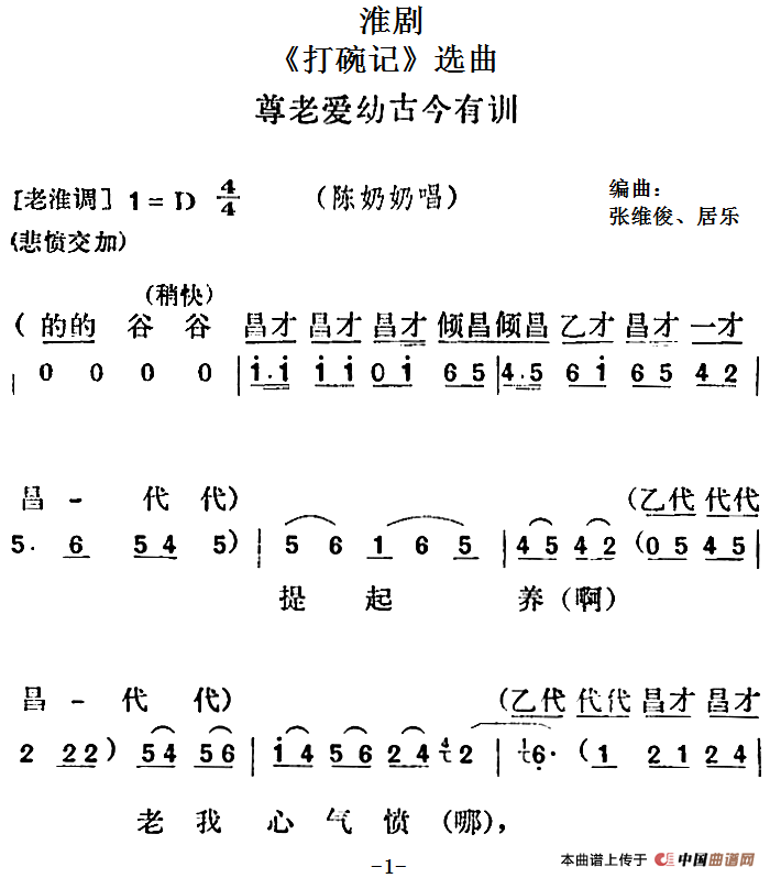 关于《[淮剧]《打碗记》选曲:尊老爱幼古今有训》曲谱的评论
