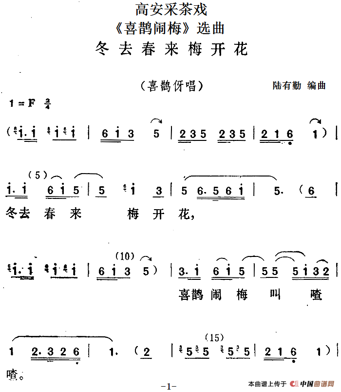 关于《[高安采茶戏]《喜鹊闹梅》选曲:冬去春来梅开花》曲谱的评论