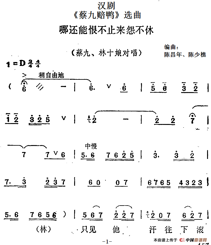 ![[汉剧]《蔡九赔鸭》选曲:哪还能恨不止来怨不休(蔡九、林十娘对唱)(1)_原文件名:[汉剧]《蔡九赔鸭》选曲:哪还能恨不止来怨不休(蔡九、林十娘对唱)陈昌年、陈少樵编曲457.png](/Public/Uploads/2018/05/16/2379455afc48894bbf9.png)