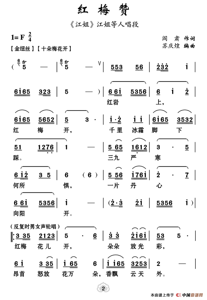 关于《[云南花灯]红梅赞》曲谱的评论