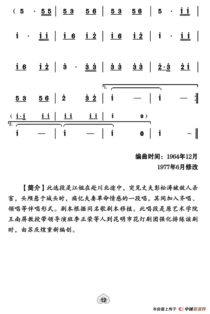 关于《[云南花灯]革命到底志如刚》曲谱的评论