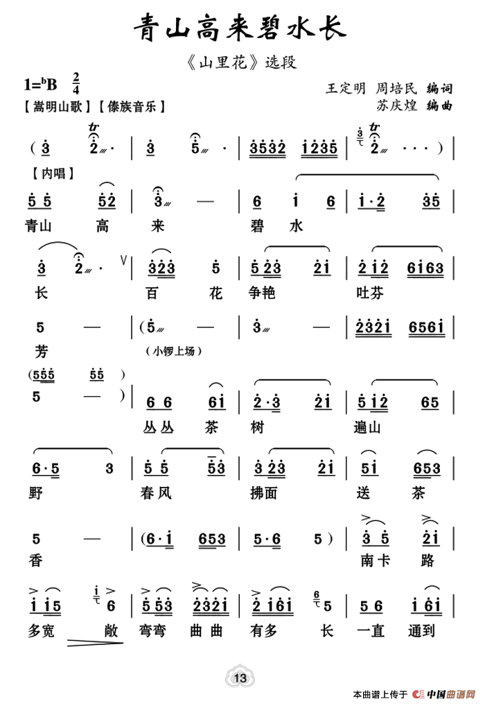 关于《[云南花灯]青山高来碧水长》曲谱的评论