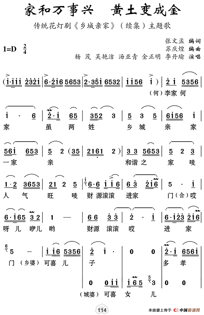 关于《[云南花灯]家和万事兴 黄土变成金》曲谱的评论