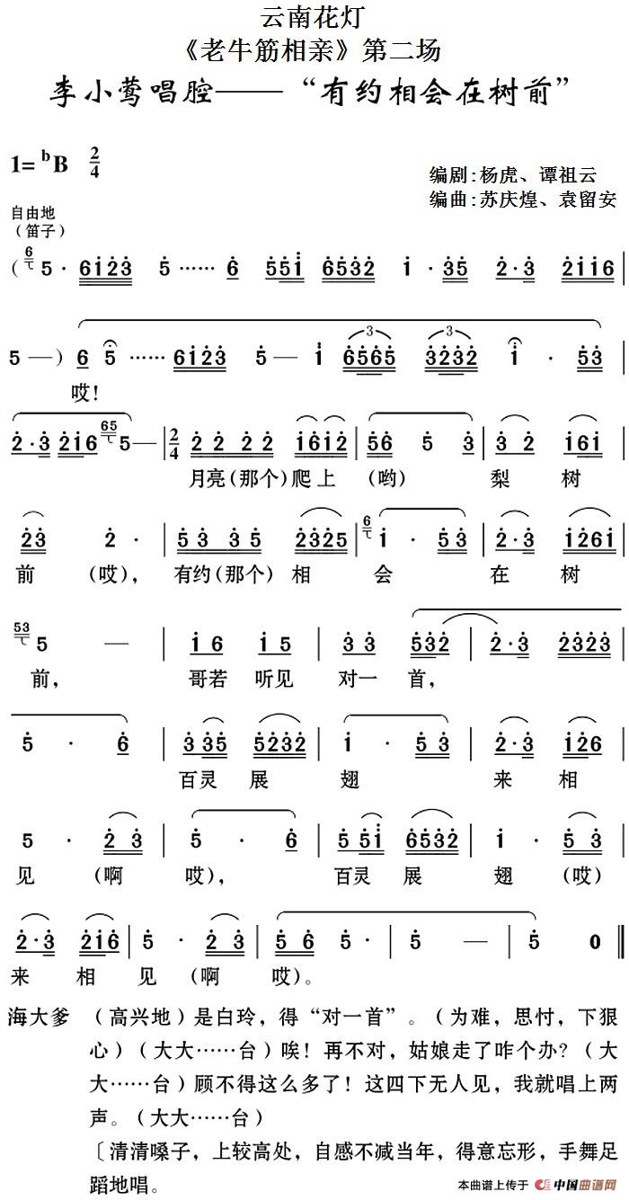 关于《[云南花灯]《老牛筋相亲》第二场:李小莺唱腔——“有约相会在树前”》曲谱的评论