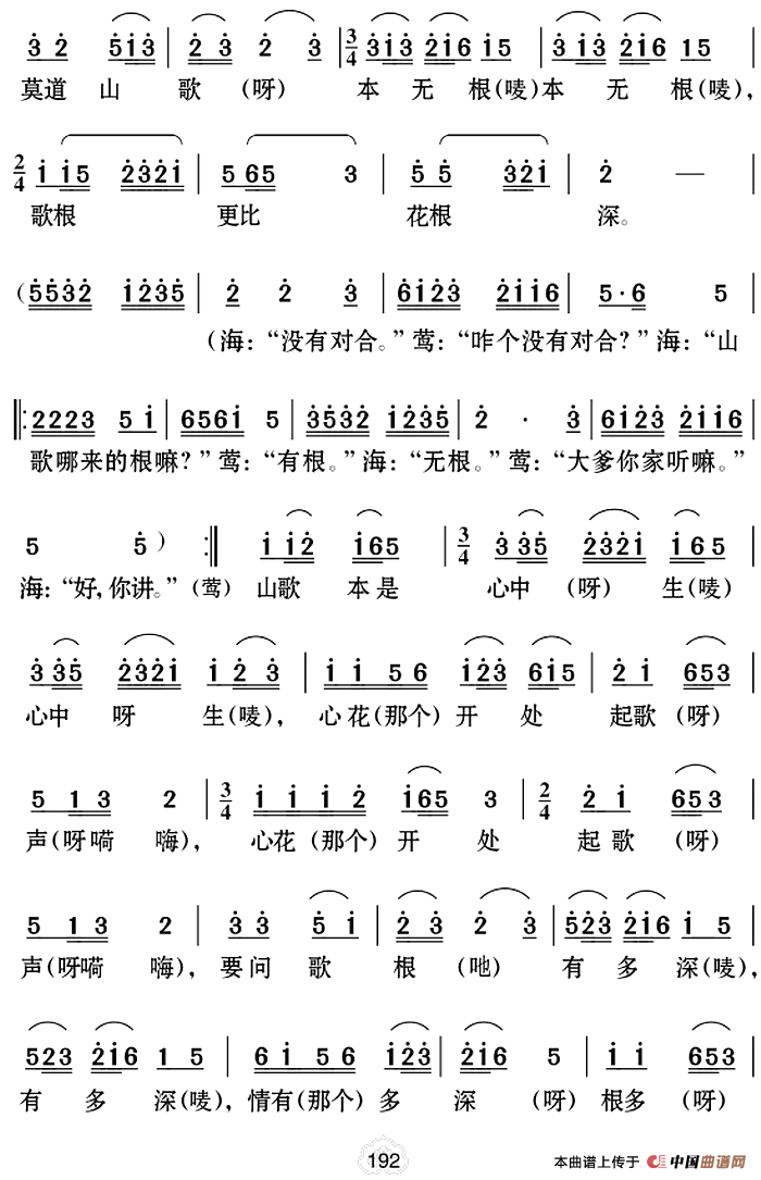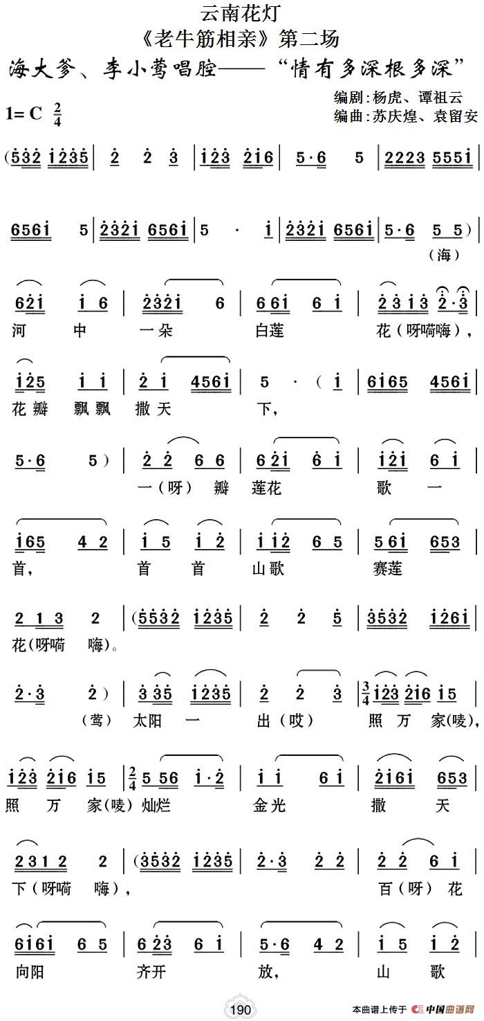 关于《[云南花灯]《老牛筋相亲》第二场:海大爹、李小莺唱腔——“情有多深根多深”》曲谱的评论