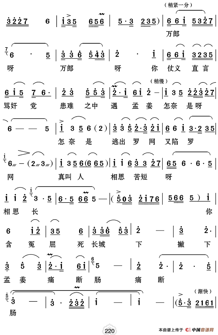 关于《[云南花灯]孟姜女》曲谱的评论