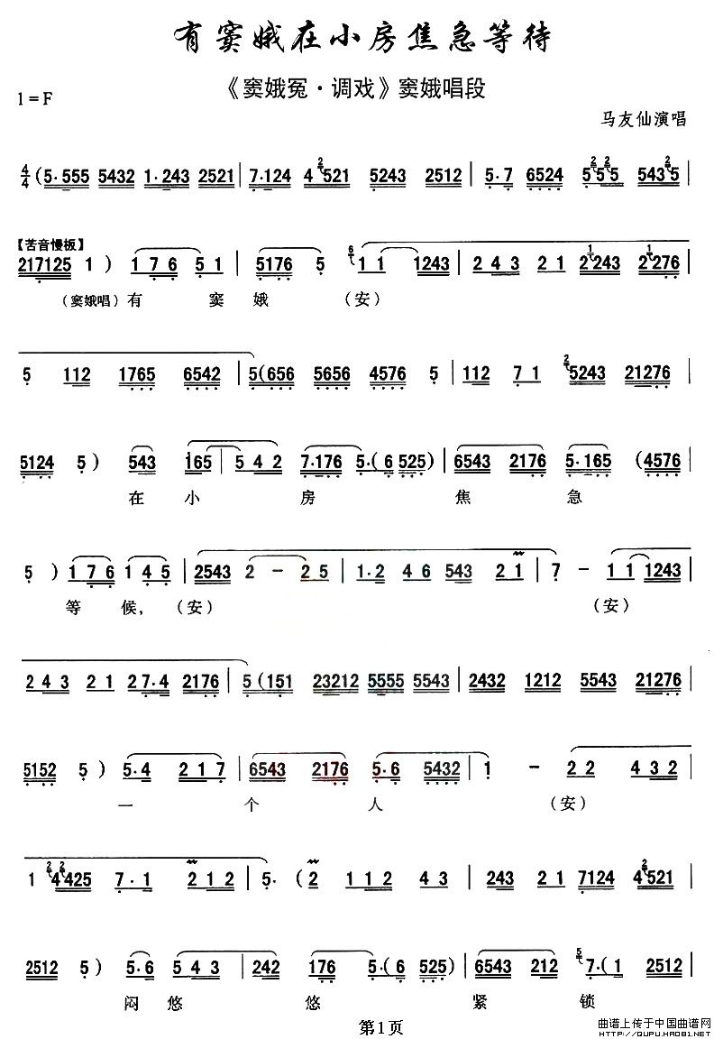 演唱(奏):【旦】马友仙 格式:简谱 来源:转自《中国秦腔俱乐部》 上传:秋叶起舞