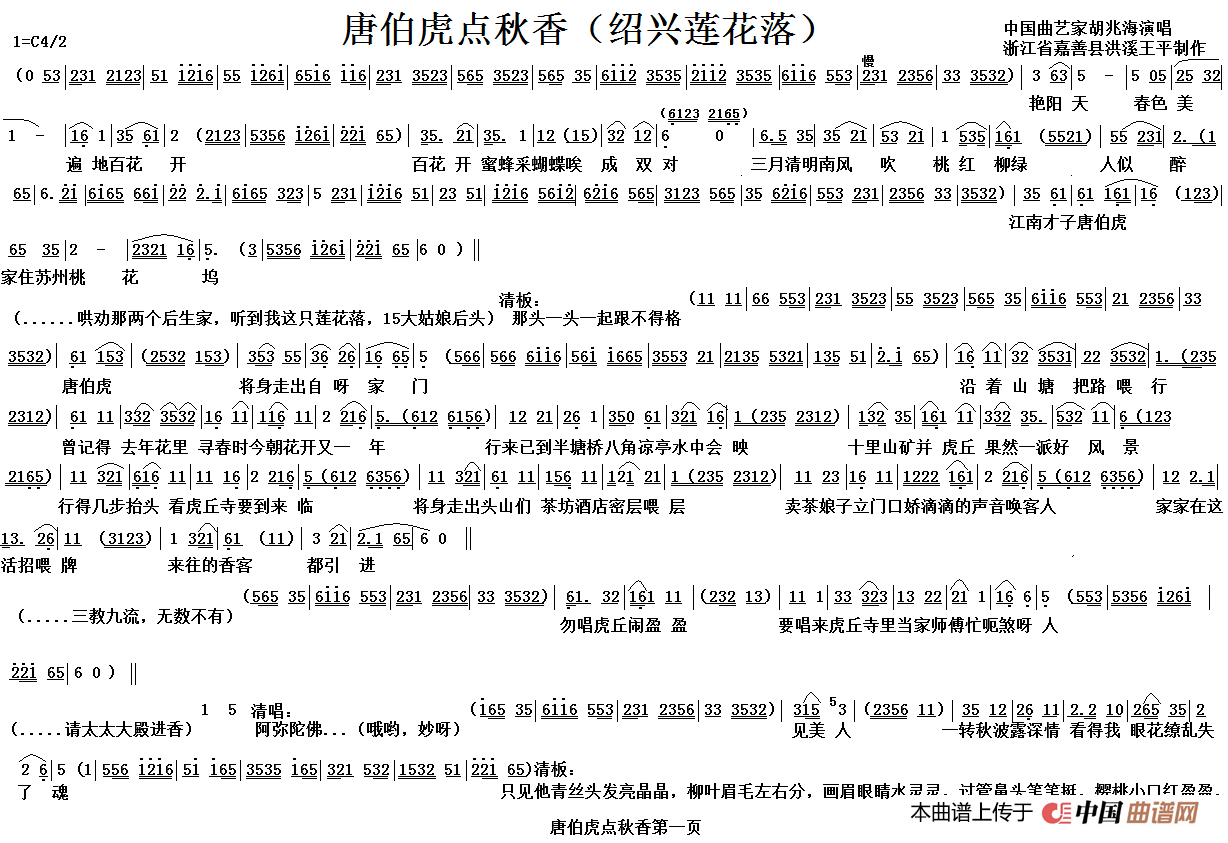 关于《[绍兴莲花落]唐伯虎点秋香》曲谱的评论