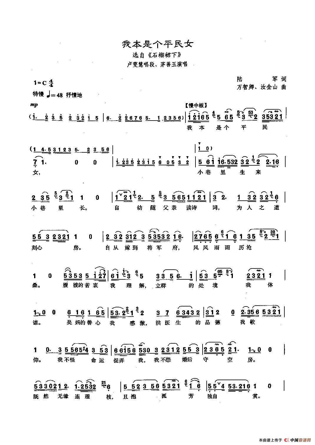 《[沪剧]73我本是平民女》文本歌词