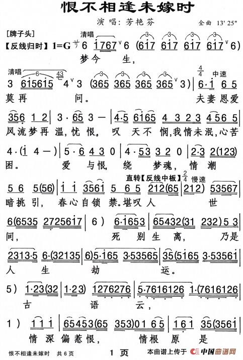 关于《[粤曲]恨不相逢未嫁时》曲谱的评论