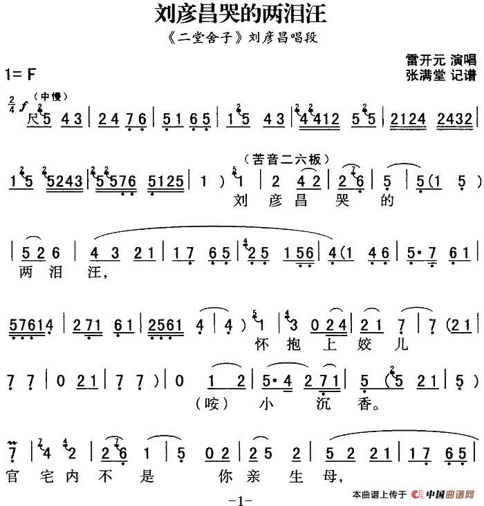 秦腔流行唱段精选:刘彦昌哭的两泪汪(《二堂舍子》刘彦昌唱段)