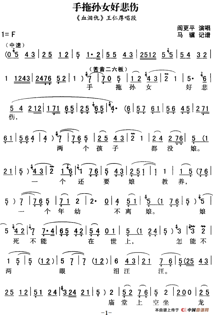 关于《秦腔流行唱段精选:手拖孙女好悲伤》曲谱的评论