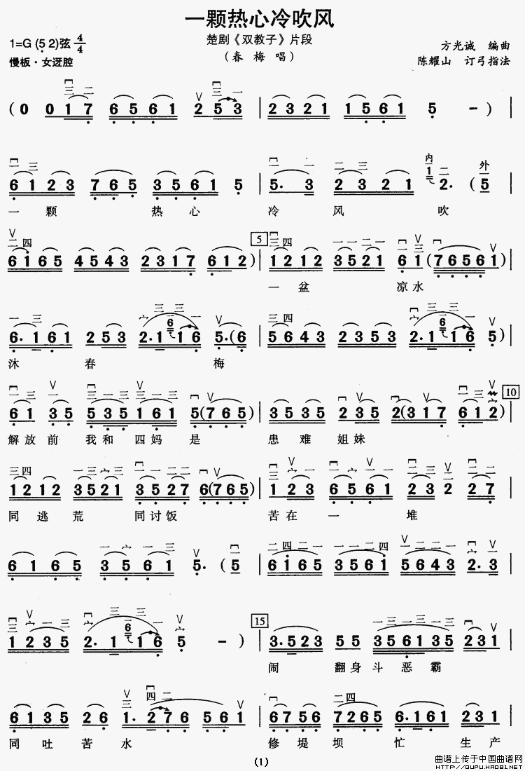 [楚剧]一颗热心冷吹风(《双教子》片段、二胡伴奏谱)