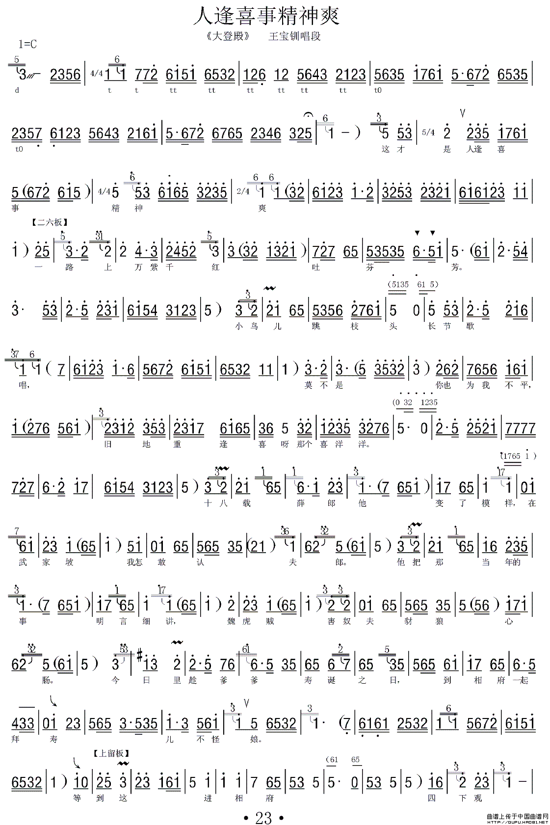 [河北梆子]人逢喜事精神爽(《大登殿》王宝钏唱段、伴奏谱)