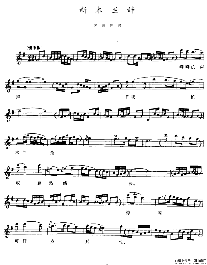 [苏州弹词]新木兰辞(五线谱)