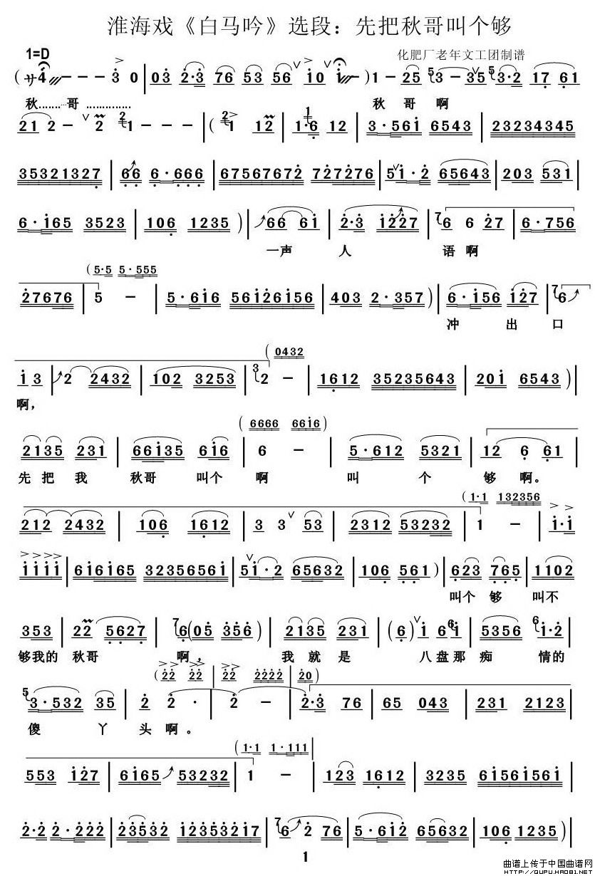 关于《[淮海戏]先把秋哥叫个够》曲谱的评论