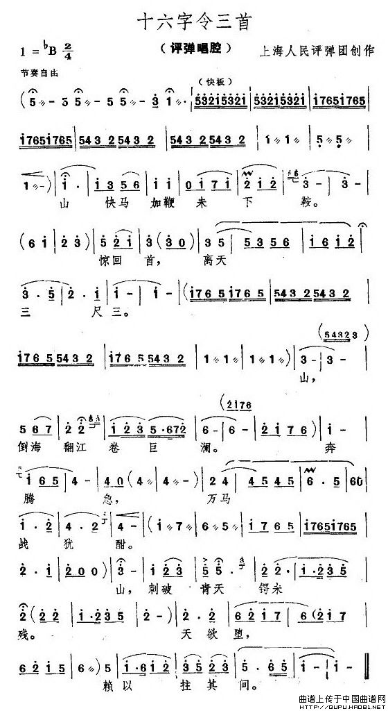 关于《[评弹]十六字令》曲谱的评论