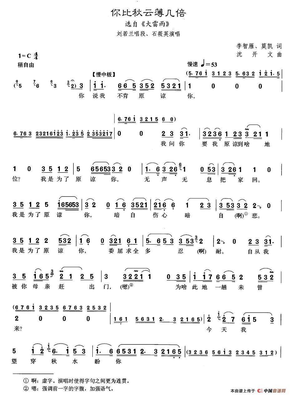 关于《[沪剧]你比秋云薄几倍》曲谱的评论