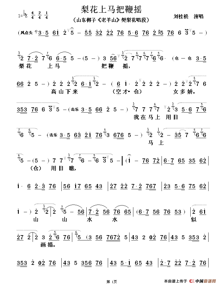 关于《[山东梆子] 梨花上马把鞭摇》曲谱的评论