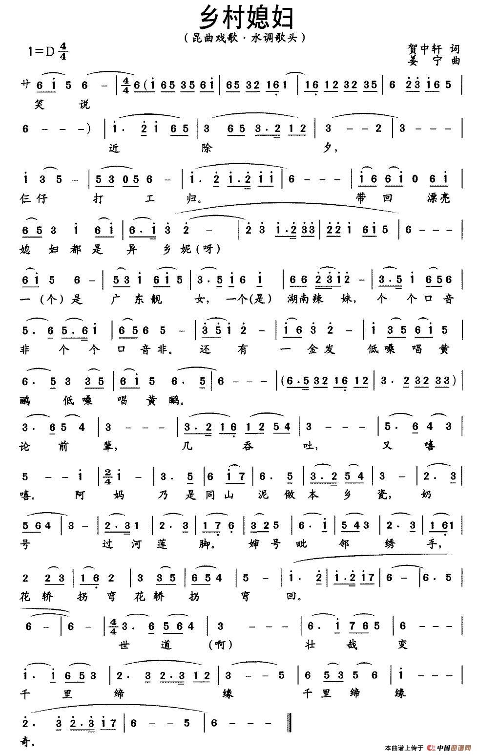 关于《[昆曲戏歌]乡村媳妇》曲谱的评论
