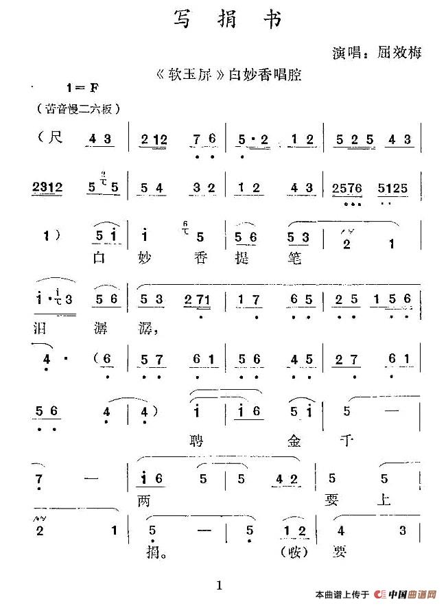 ![[秦腔] 写捐书 (《软玉屏》白妙香唱腔)(1)_原文件名:1.jpg](/Public/Uploads/2013/08/21/52142e0b4959d.jpg)
