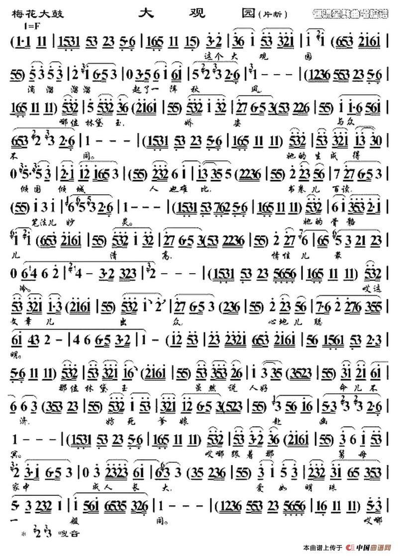 ![[梅花大鼓] 大观园(片段)(1)_原文件名:1梅花大鼓·大观园(片断)(曲谱).jpg](/Public/Uploads/2014/01/03/9107652c648a4511aa.jpg)