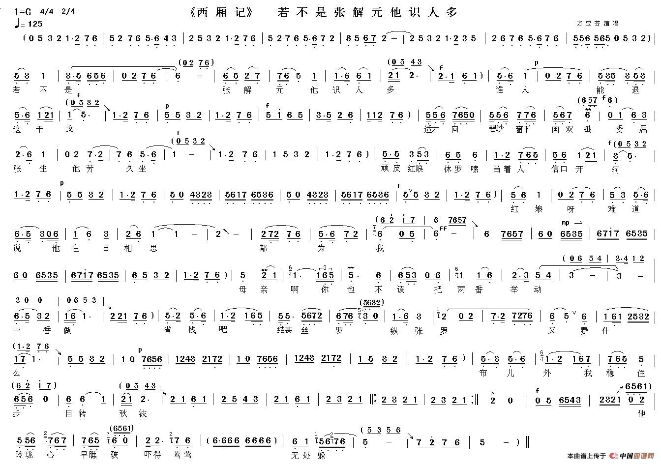 关于《若不是张解元他识人多》曲谱的评论
