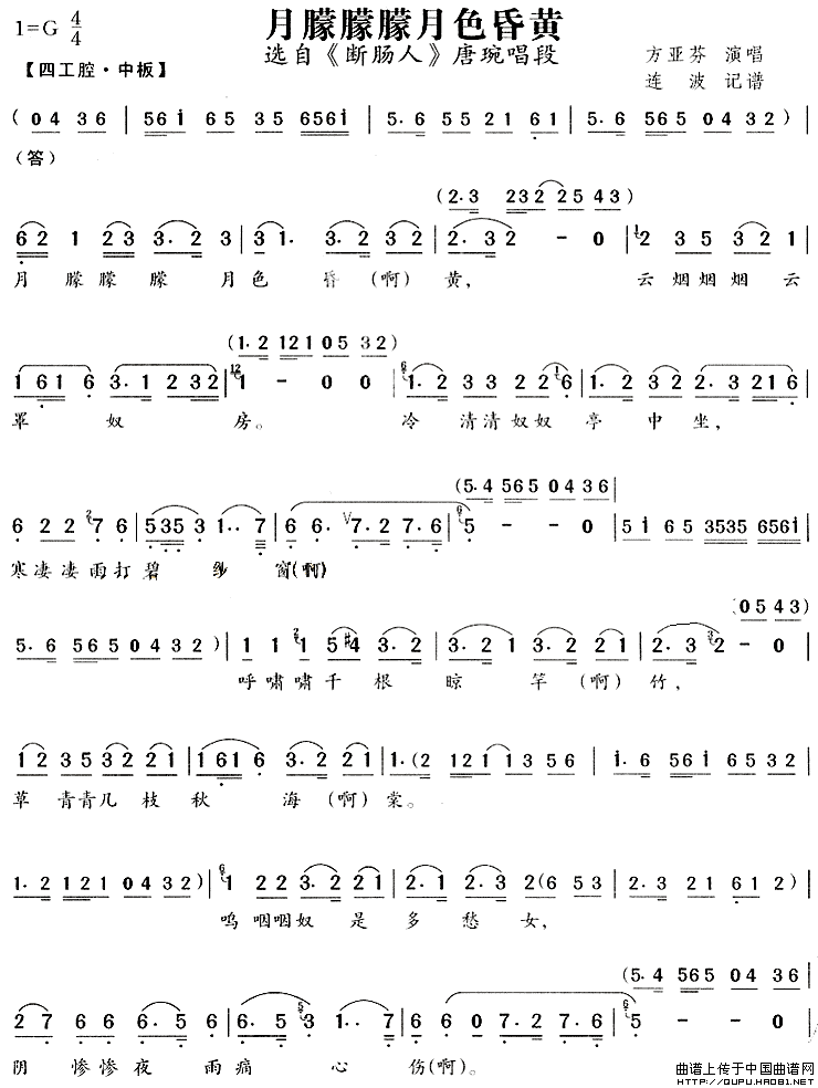 月朦朦朦月色昏黄(《断肠人》唐琬唱段)