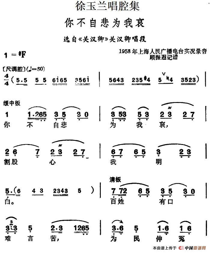 徐玉兰唱腔集:你不自悲为我哀(选自《关汉卿》关汉卿唱段)
